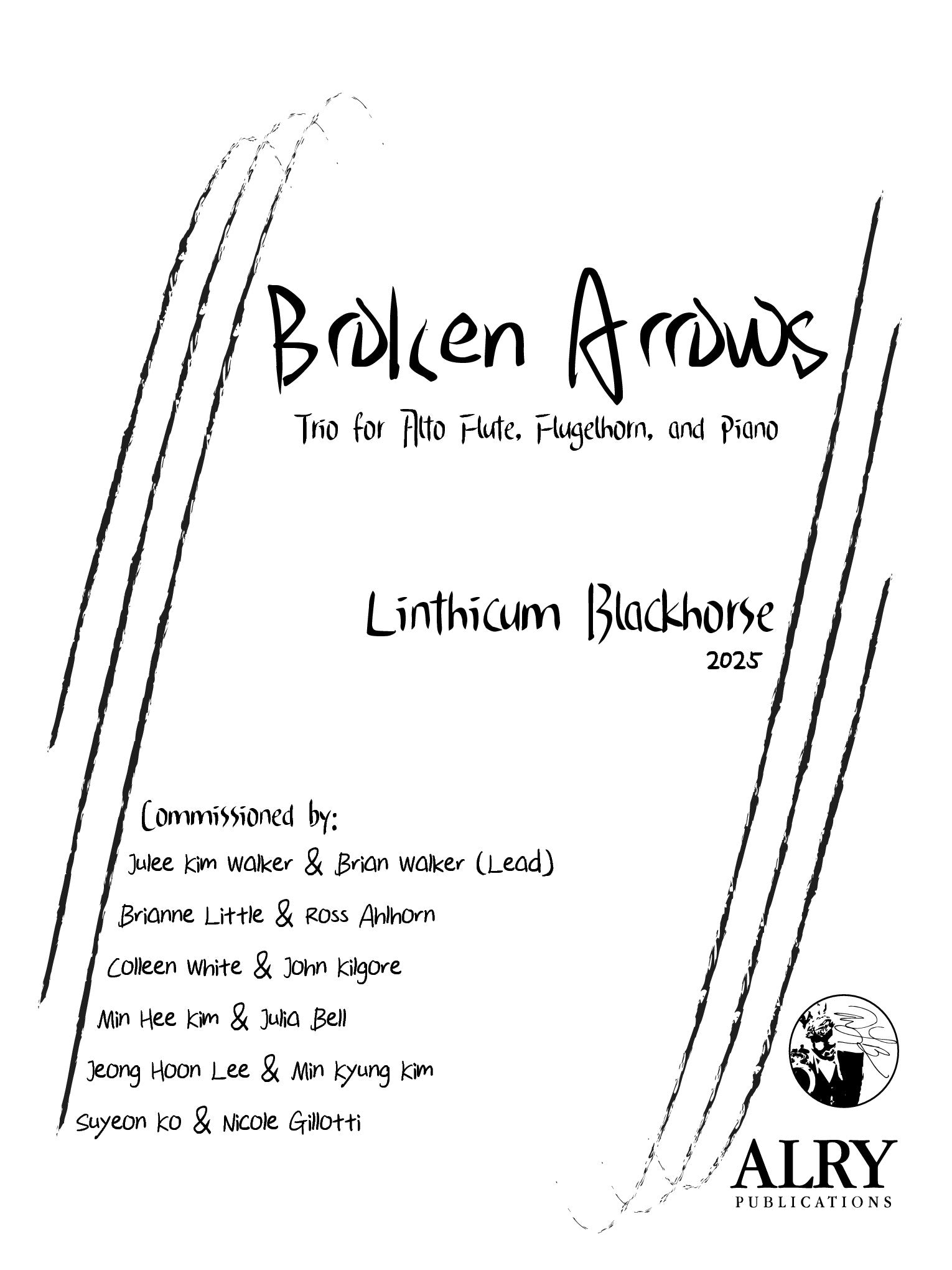 Broken Arrows for Alto Flute, Flugelhorn and Piano by Linthicum-Blackhorse. From the composer: "This piece is a reminder that human nature can be cruel and beautiful all at the same time. When an arrow is broken, a new one can be forged to restore what was taken and mend