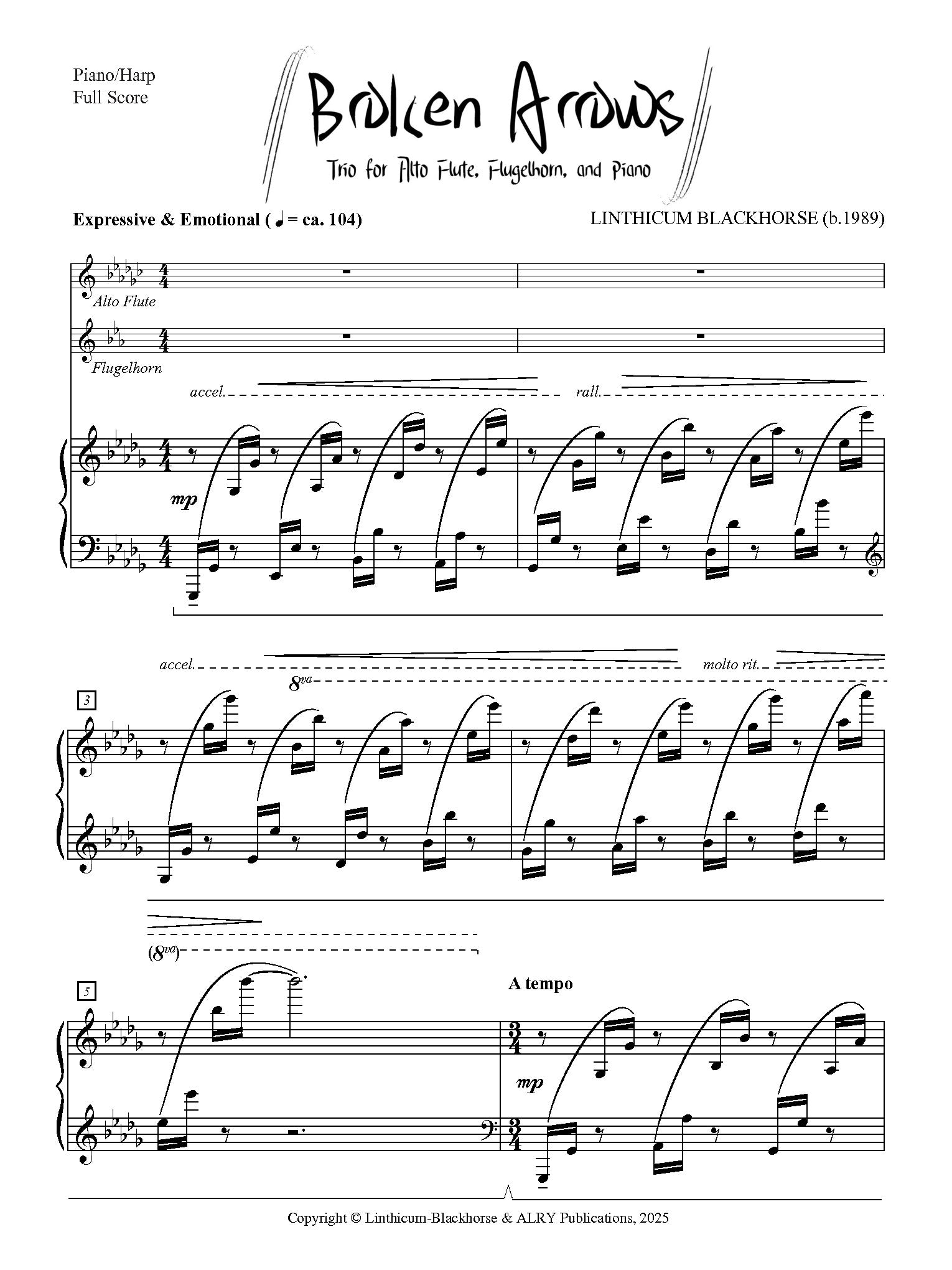 Linthicum-Blackhorse - Broken Arrows for Alto Flute, Flugelhorn and Pi