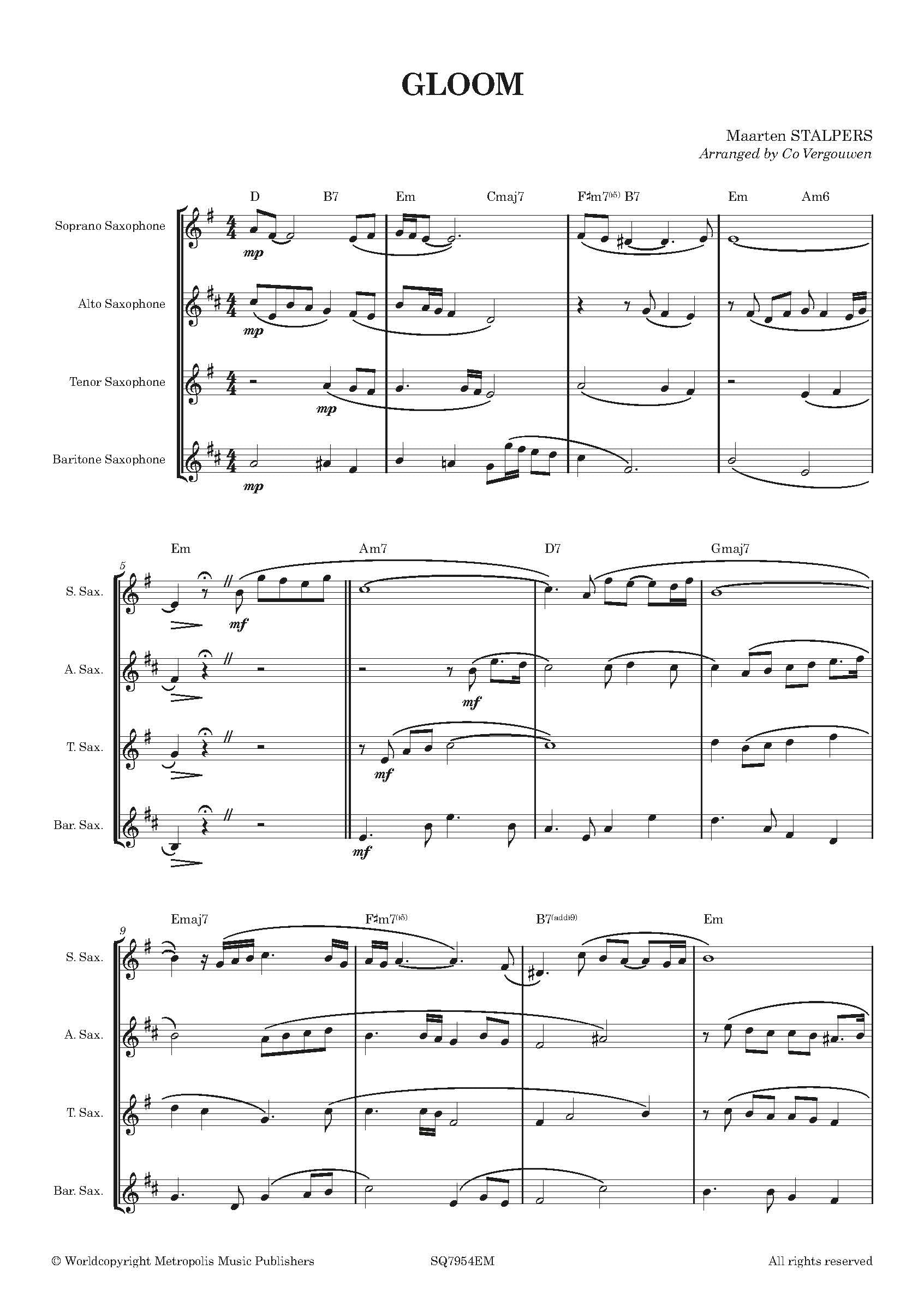 Gloom by Maarten Stalpers, arranged for saxophone quartet by Co Vergouwen.