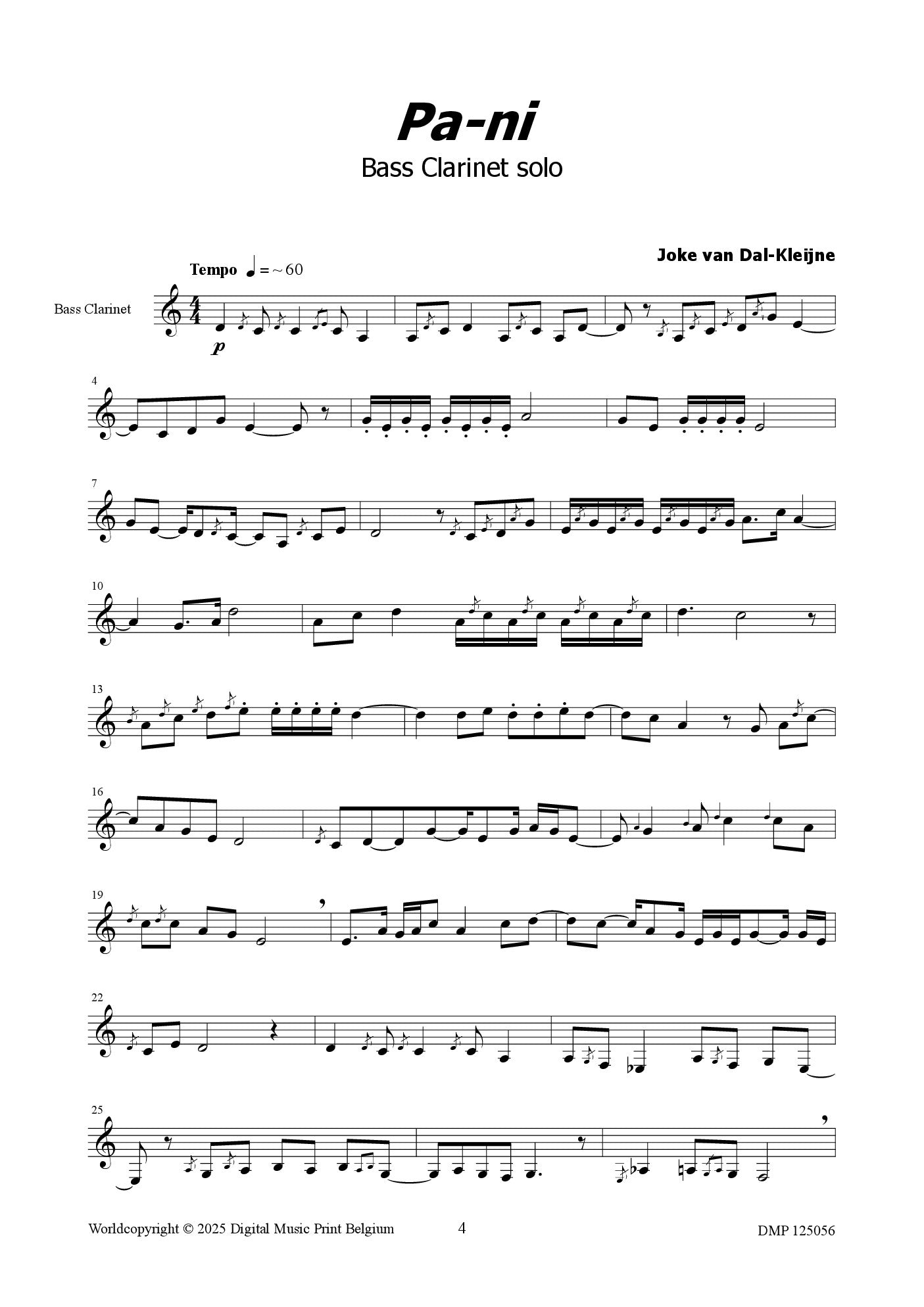 van Dal-Kleijne - Pa-ni for Bass Clarinet - BC125056DMP Digital Music Print Sale! from $12.00 Qty. Add to Cart SKU: BC125056DMP Joke van Dal-Kleijne - Pa-ni for Bass Clarinet. Previous Next