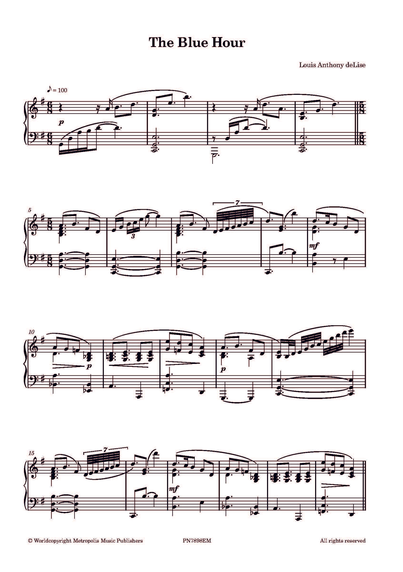 deLise - The Blue Hour for Piano Solo - PN7898EM Metropolis Music Publishers Sale! from $21.00 Choose format: Printed Book Only Printed book and PDF via Email INSTANT PDF Qty. Add to Cart SKU: PN7898EM Louis Anthony deLise - The Blue Hour for Piano Solo. Previous Next
