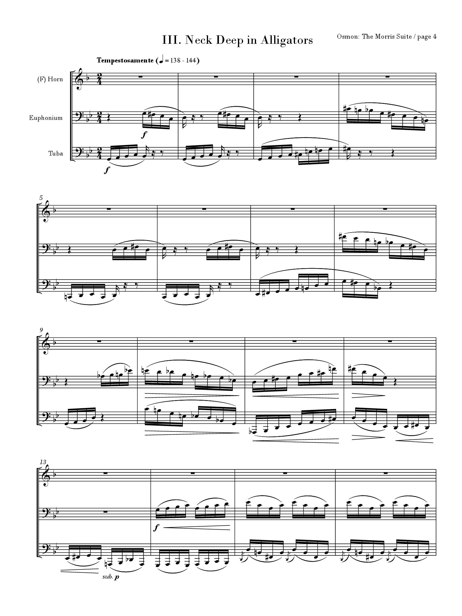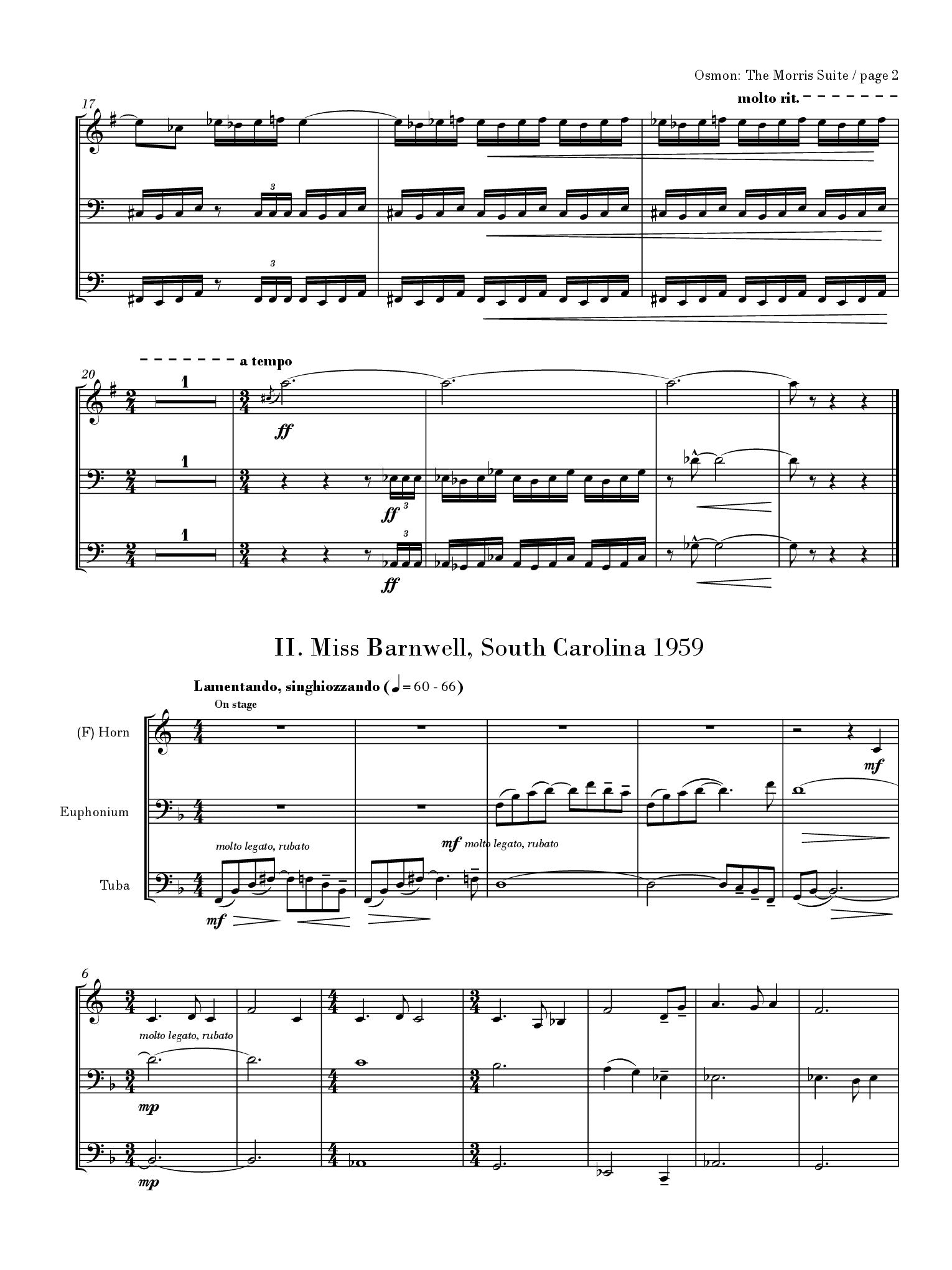 Leroy Osmon - The Morris Suite for Horn, Euphonium and Tuba. In three movements: Fanfare: 50 Years of Dreams, Miss Barnwell, South Carolina 1959, and Neck Deep in Alligators.