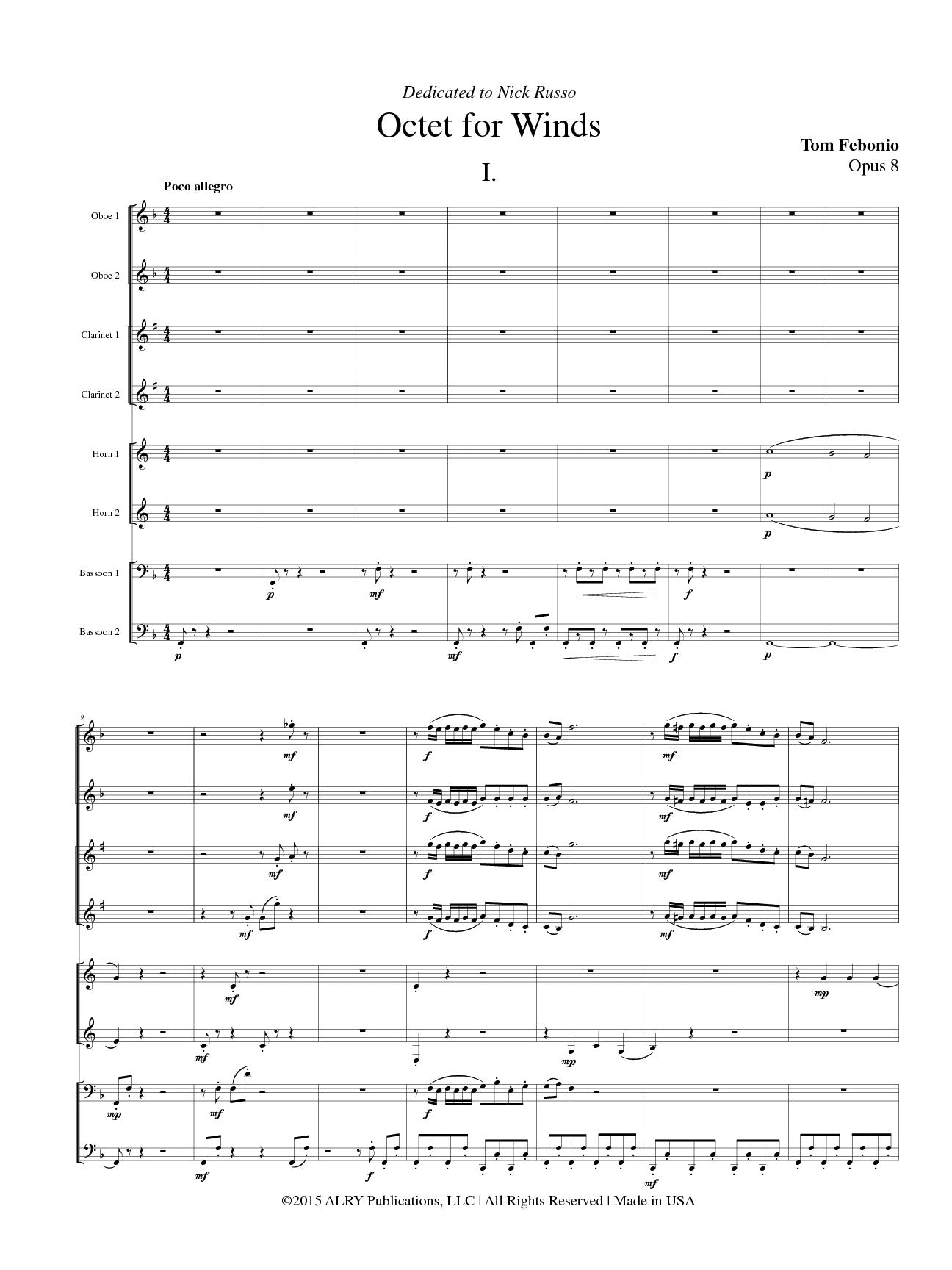 Febonio - Octet for Winds - TF03 ALRY Publications Sale! from £23.00 Choose format: Printed Book Only Printed book and PDF via Email INSTANT PDF Qty. Add to Cart SKU: TF03 A terrific work for double wind quartet. Three movements, suitable for contests or recitals. Instrumentation 2 Flutes 2 Oboes 2 Clarinets 2 Bassoons Previous Next